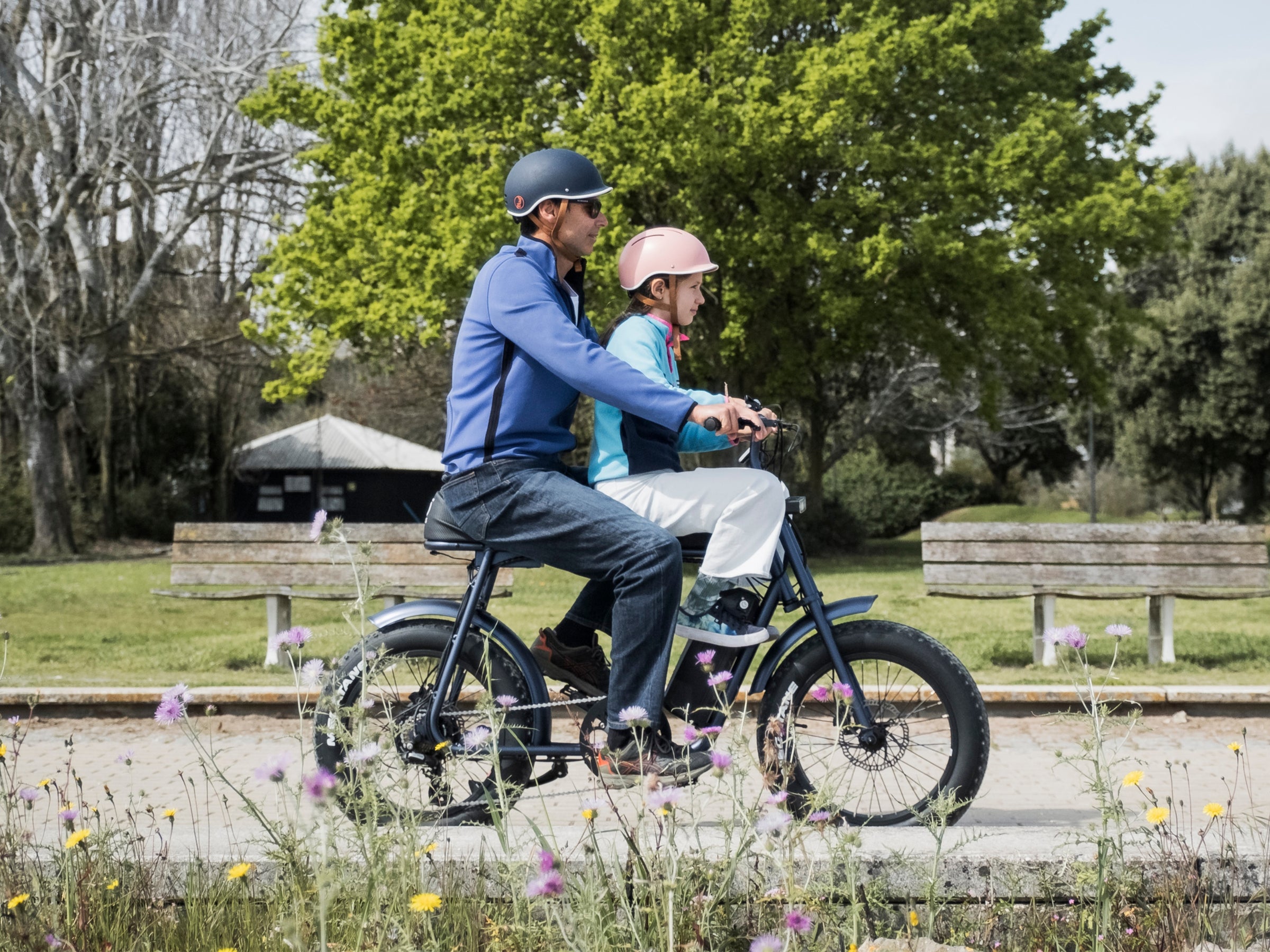 Our e-bikes allow, depending on the model, to accommodate one or two children in the front or back of the long seat as long as they are transported in safety. For toddlers / babies we offer child seats and foot protectors.